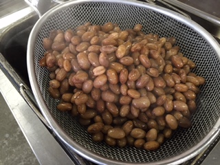 写真右は出来上がったうずら豆のグラッセの様子です。