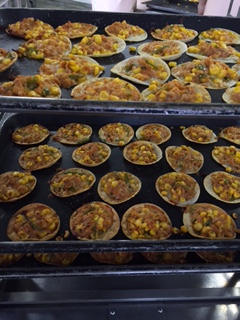 写真右は焼きあがったばかりの、変わりピザの様子です。