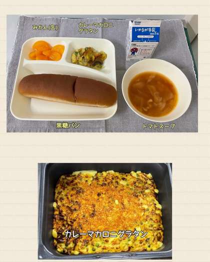 ※カレーマカロニグラタン ※トマトスープ ※みかん(缶)