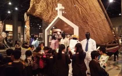 子どもたちは、各地の衣装を見ながら「かわいい〜♪」「きれい〜」と喜び