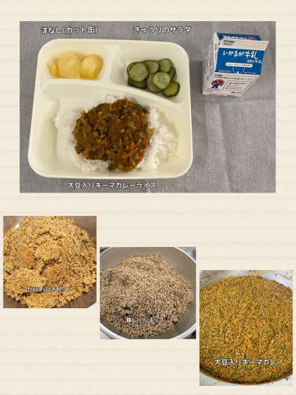 ※大豆入りキーマカレーライス ※きゅうりのサラダ