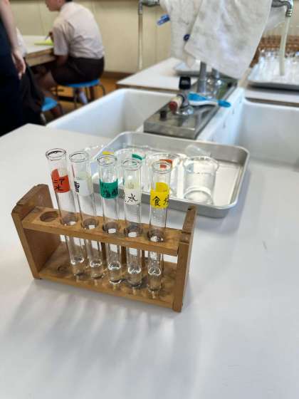 6年生の理科は水溶液について学習しました!塩酸や水酸化ナトリウム、アンモニアなど様々な水溶液の違いを調べます。見た目、匂いなど科学的な視点で違いを追求していきます。なかなか高学年らしい実験ですね。