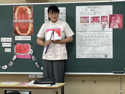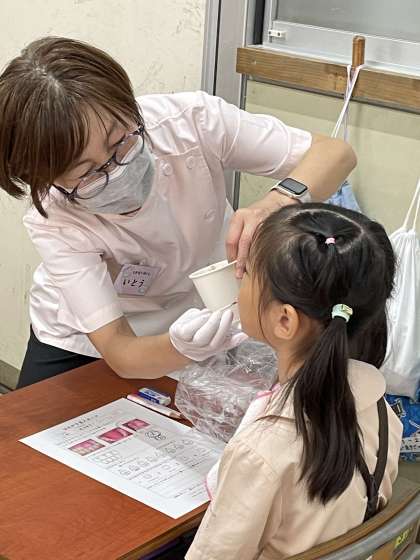 歯垢染め出しを行いました。鏡をみながら一生懸命にみがいていました。