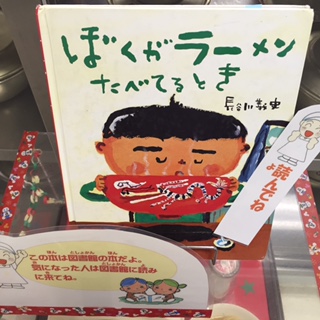 写真中央は本日の給食図書の「ぼくがラーメンたべてるとき」です。