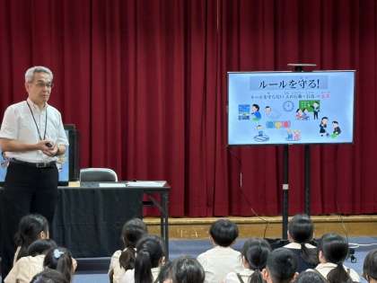 中央少年サポートセンターの方々から、ルールを守ること、非行をしないために心のブレーキをかけることの大切さについて学びました。