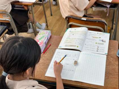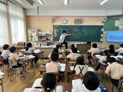 今日は、かける数とかけられる数の学習ですね。掛け算なのに割り算の考え方が必要な単元です。子どもたちは、自分の考えをしっかりもって、計算に取り組んでいました。素晴らしい姿でした。