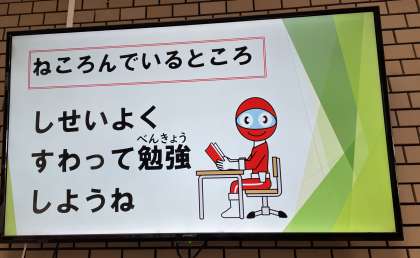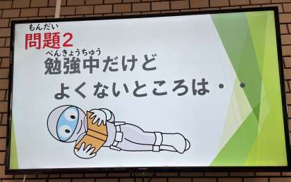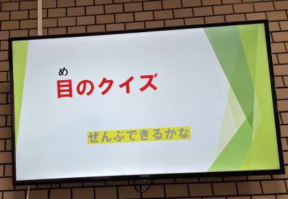 学校の玄関のところに、「目のクイズ」の動画が流れています。