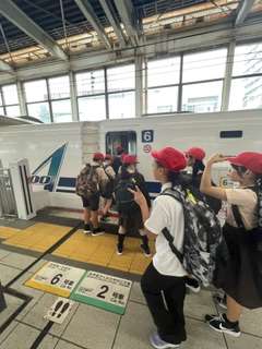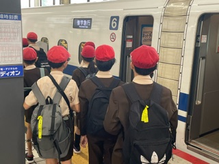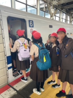 新幹線の修学旅行列車に乗車し、帰阪します。