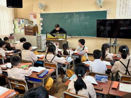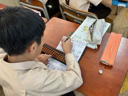 四年生は算数の時間にそろばんの学習をしていました。使い慣れないそろばんをかちゃかちゃして、なんとか計算を進めていました。慣れてくるととんでもないスピードになります。頑張って!
