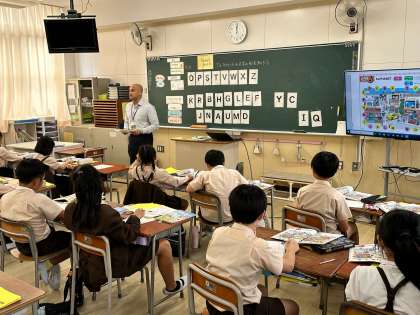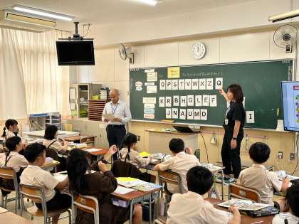 三年生は、今日はc-netの先生とアルファベットの学習をしていました。c-netの先生に合わせてアルファベットを発音します。なかなか難しい発音もあるけど、みんな楽しそうに活動していました。