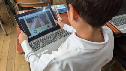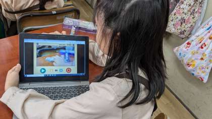 ICTの先生に、KOMA KOMAアプリを使って、コマ撮りアニメーションの作り方を教えていただきました。少しずつ物を動かして写真に撮り、消しゴムが動いたり、鉛筆が回ったりする動画を作って、楽しみました。