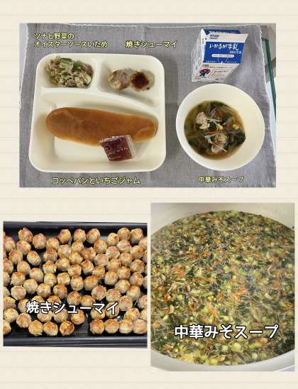 ※焼きシューマイ ※中華みそスープ ※ツナと野菜のオイスター