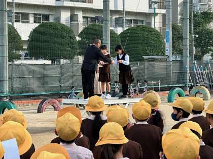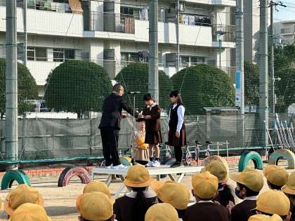 月曜日の朝は月曜朝会です。今日は、2つ表彰がありました。
