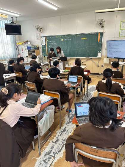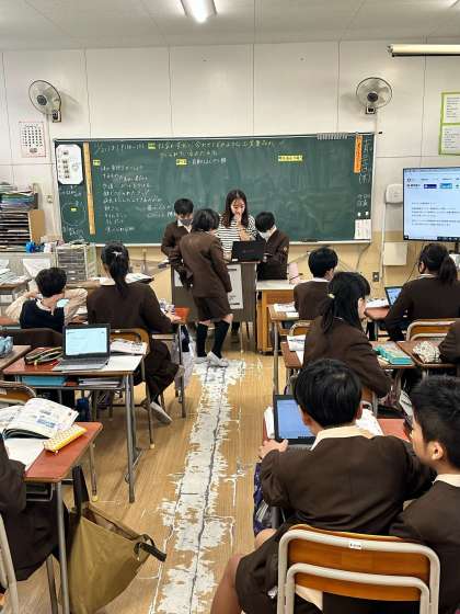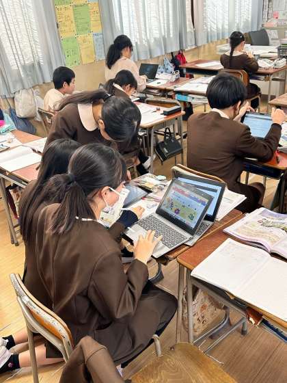 五年生の社会では、これから工業製品について調べ学習をしていました。パソコンを用いて、友達と相談してしながら調べます。パソコンを使った調べ方がとても上手ですね。