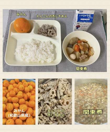 ※関東煮 ※れんこんの赤じそあえ ※みかん