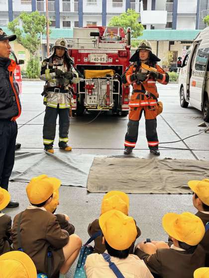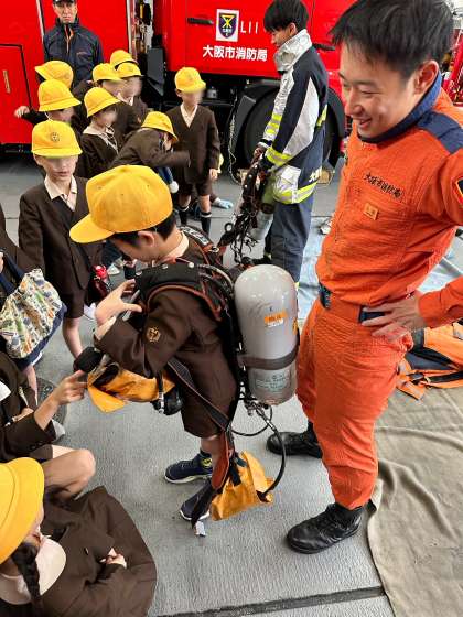 三年生は社会見学で鶴見消防署に行きました。消防署では、消防車両を見学したり、消防署内の施設を見学したりしました。消防署で働く人々の仕事、思いや努力を感じることができたのではないでしょうか。