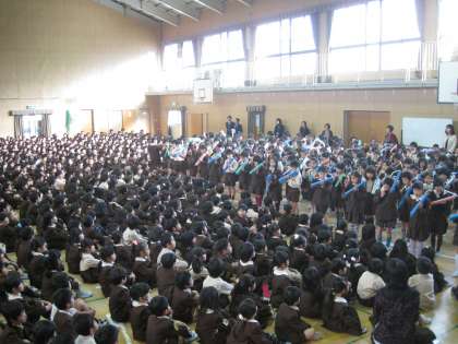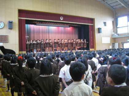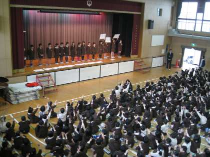 冬休みの生活や健康についての話を聞いた後、6年生の手話に合わせて全校児童で元気に校歌を歌いました。安全で楽しい冬休みを過ごして、1月7日(木)の3学期始業式にはみんな元気に登校してほしいですね。