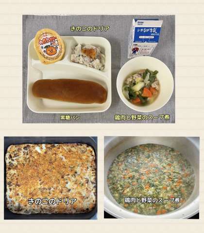 ※きのこのドリア ※鶏肉と野菜のスープ煮 ※みかんゼリー