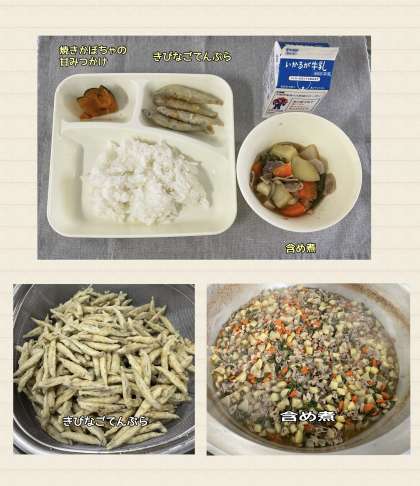 ※きびなごてんぷら ※含め煮 ※焼きかぼちゃの甘みつかけ