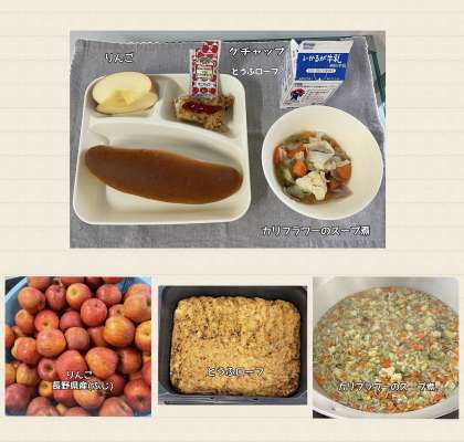 ※とうふローフ ※ケチャップ(袋) ※カリフラワーのスープ煮
