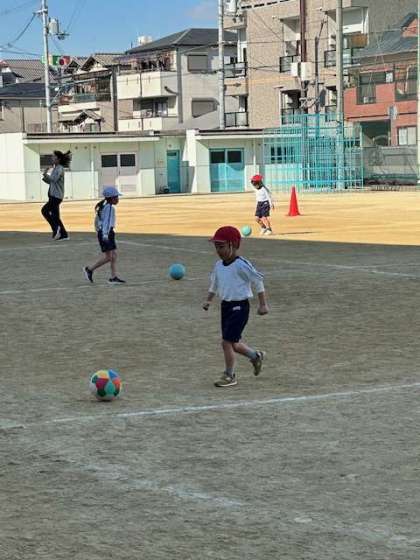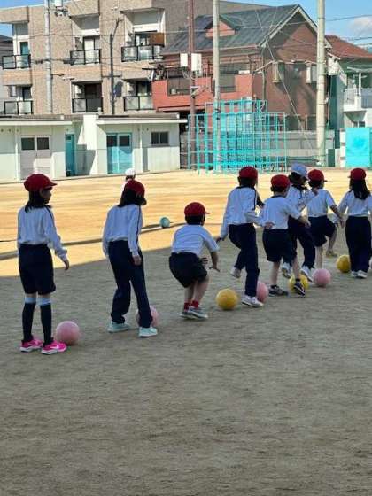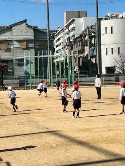 一年生は体育の時間、サッカー型のボール遊びをしていました。足でボールをコントロールするのは難しいみたいですね。一生懸命にボールを追いかけます。また、隣のコートでは縄跳びにも挑戦していました。寒いけど楽しく体を動かしています。よく頑張っていました。