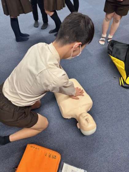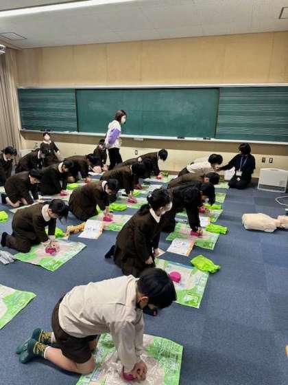 今日の保健委員会の活動は、救急救命法の講習でした。応急手当普及員認定証を持っている教頭先生が講師となり、保健委員会の児童に、救急救命の大切さと、胸骨圧迫の方法を講義していました。