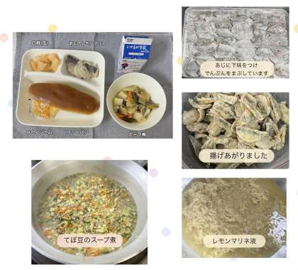 ※あじのレモンマリネ ※てぼ豆のスープ煮 ※白桃(缶)
