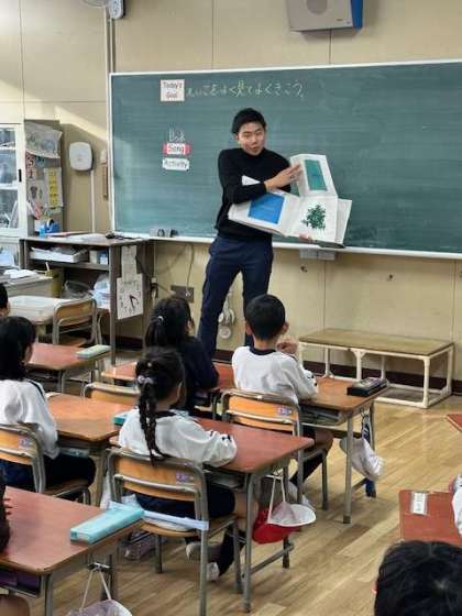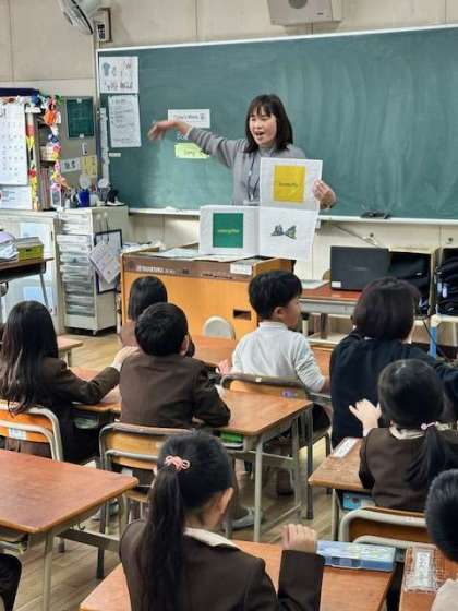 だいたい、水曜日と金曜日の朝は、鶴見南イングリッシュタイム(ETE)があります。今朝の一年生の教室では、三年生と五年生の先生が一年の教室で英語で絵本の読み聞かせを行いました。子どもたちは、楽しみながら英語にふれていました。