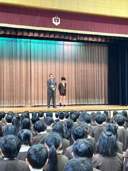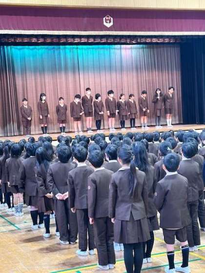 今日は、校長先生のお話の中で、六年生の児童が紹介されました。地域の方が朝の見守り活動をされていますが、いつもいつも毎回元気な挨拶しているということで、たいへんお褒めになられたそうです。気持ちの良い挨拶ができて、それを続けることができるのは、とても素晴らしいことだと感じます。この雰囲気をみんなで大切にしていきたいですね!この後は、美化委員会からも報告があり、充実した朝会となりました。