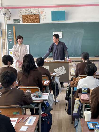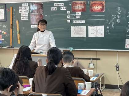 大阪市教育委員会から歯科衛生士の先生2名と本校歯科校医野村先生が来られて、6年生にむし歯や歯肉炎のついての指導がありました。