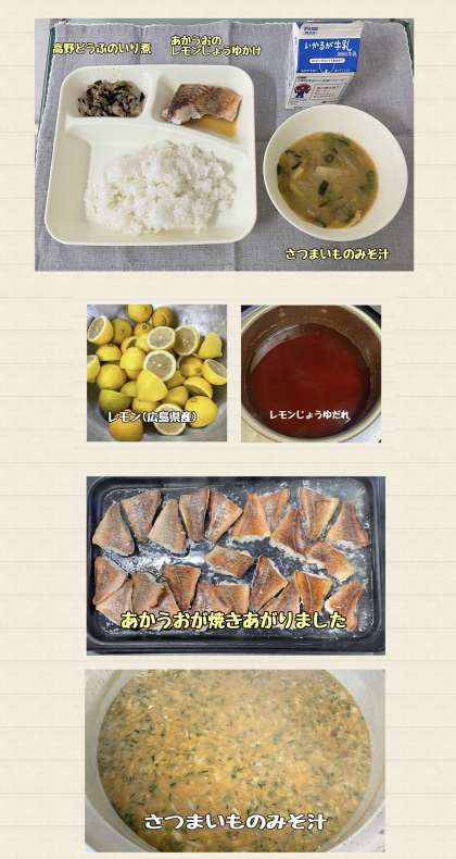 ※あかうおのレモンじょうゆかけ ※さつまいものみそ汁
