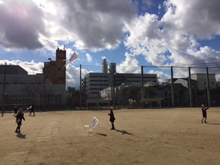 でもそんな寒い中で、3,4年はランラン週間に、1年生は凧揚げに歓声を上げながら頑張っていました。元気な人は寒さに負けずにがんばってほしいですが、体調の悪い人は十分に気を付けてください。