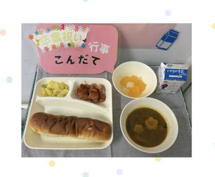 今日の献立は卒業祝い献立です。6年生の卒業をお祝する気落ちがこめられています。