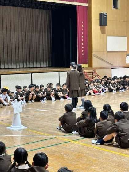 今朝は児童集会で、「新入生を迎える会」が行われました。