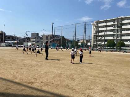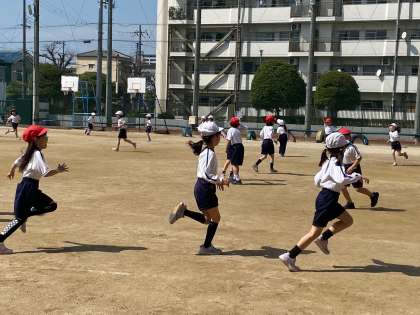 子どもたちは、広い運動場をいっぱい使って、元気に走り回っていました。