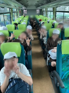 雨も止み、今から万博会場に向けて、貸切バスで出発です。