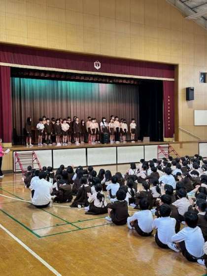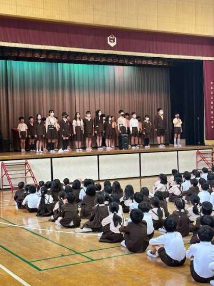 今日は、四年生の児童がなぎなた大会で賞状をもらったので紹介されていました。