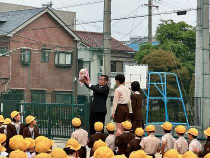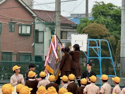 全校朝会で、校長先生のお話のあと、キックベースチームとソフトボールチームの表彰がありました。昨日行われた鶴見区の大会で、キックベースチームが優勝、ソフトボールチームが3位という結果でした。素晴らしい成績ですね。全校児童のまえで、それぞれのチームに賞状と優勝旗、カップが手渡されました。今後も、活躍していって欲しいですね。