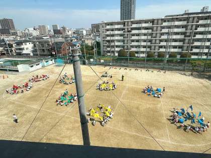 6年生は、運動会の団体演技のフラッグを練習しています。今日は、隊形移動を中心に練習しました。暑い中の練習でしたが、集中力を切らさずに息を合わせて旗を振る音が響いていました。