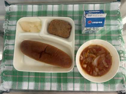 ※とんかつ ※ミネストローネ ※和なし(缶づめ) ※黒糖パン ※牛乳