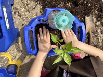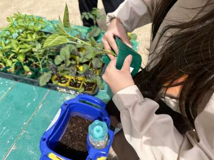 生活科の学習で夏野菜の苗を植えました。