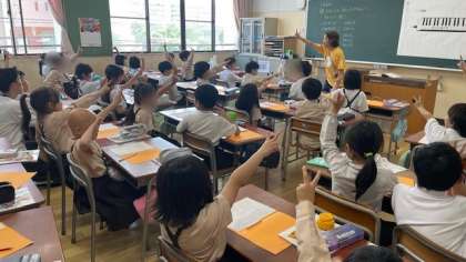音楽では、「はくのまとまりをかんじとろう」という学習をしています。