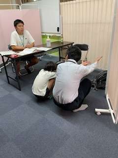 今日が3日目。多目的室を仕切って行ないました。内科校医の野村先生が、心臓の音を聞いたり、皮膚の様子、肩甲骨の左右の高さなど検診していただきました。運動器は、先生が見本となって一緒に行ってくださいました。