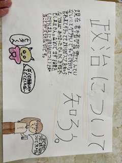 日本国憲法の学習のまとめでは、自分が気になる問題について調べてポスターにしました。