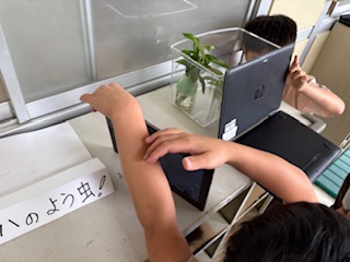 理科では、タブレットでモンシロチョウの写真を撮って、観察しました。