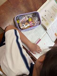 教科書の問題を解いた後、タブレットのドリルに取り組んでいます。