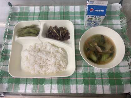 ※チンジャオニューロウスー ※中華みそスープ ※えだまめ ※ごはん ※牛乳