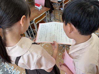 国語の学習では、クラスのみんなに自分のことをもっと知ってもらうために、自分のことを説明する文章を書きました。