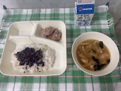 ※鶏肉の甘辛焼き ※みそ汁 ※魚ひじきそぼろ ※ごはん ※牛乳