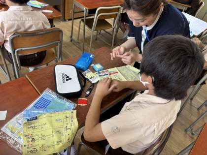 今日は玉結びと玉どめに挑戦しました。苦戦する子もいましたが、昼休みに練習し少しずつできるようになっていました。